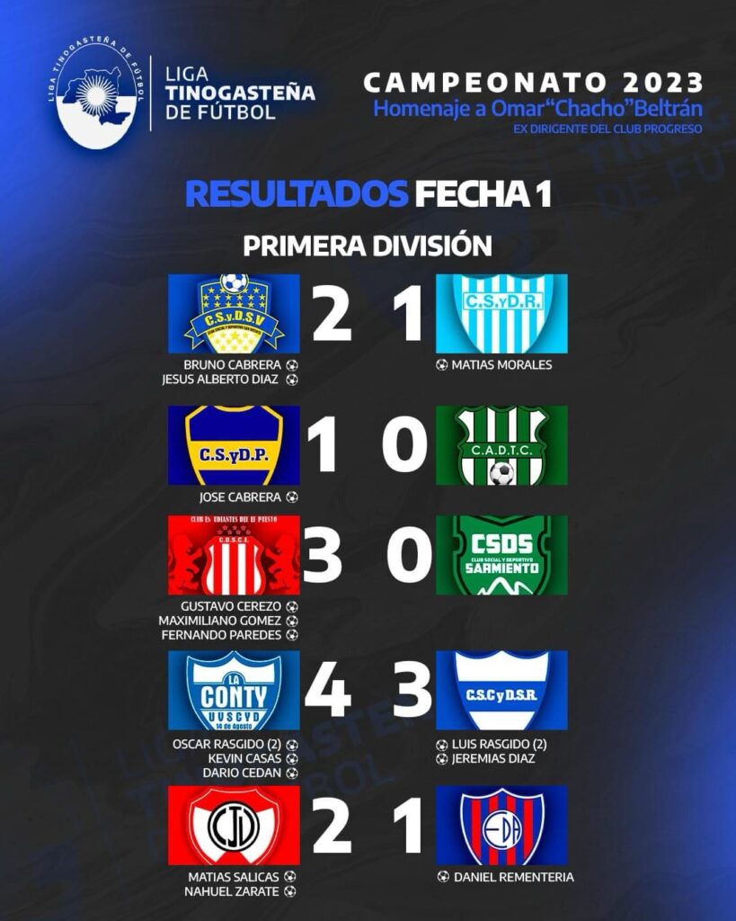 El pasado finde semana en la cancha de la Liga Tinogasteña de Fútbol, se desarrollo la primara fecha del Torneo de Primera División, denominado «Chacho Beltrán», ex dirigente del Club Social y Deportivo Progreso.