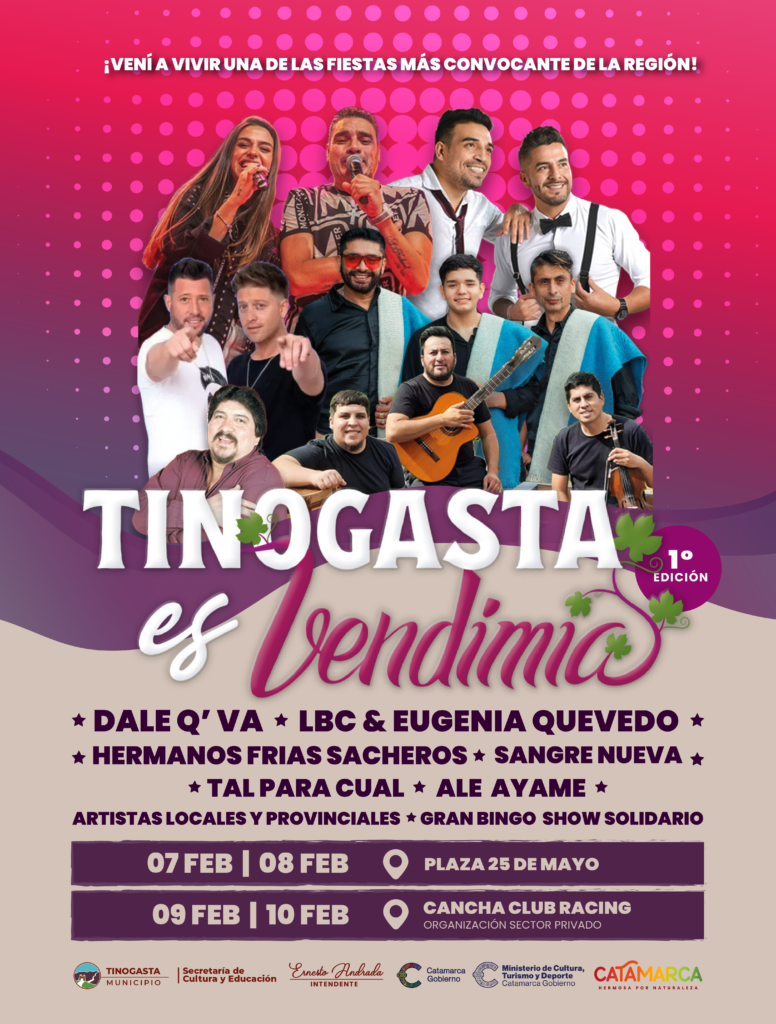 Marca en tu agenda del 7 al 10 de febrero la 1° edición de “Tinogasta es Vendimia 2024”, invitamos a vivir una de las celebraciones más destacadas de la región.