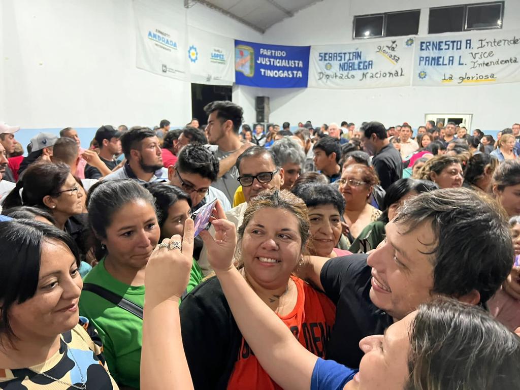 El candidato de Unión por la Patria (UxP) a diputado nacional Sebastián Nóblega, quien es actual intendente de Tinogasta, acompañó en su distrito el cierre de campaña del candidato a intendente, Ernesto Andrada y Pamela López, candidata a vice intendenta.