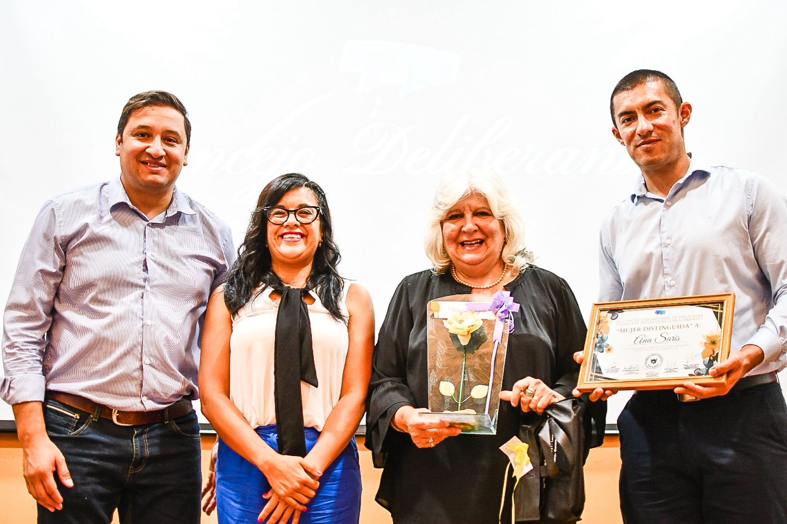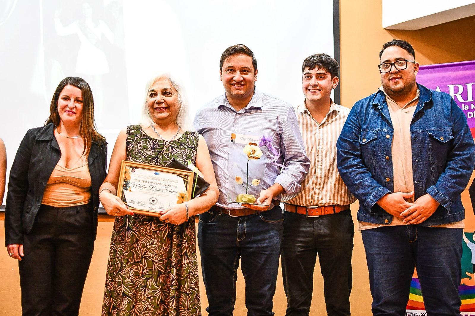 Uno de los momentos más significativos de la velada fue la entrega de las distinciones “Mujer Distinguida”, reconocimiento instituido mediante la Ordenanza N° 1.110/2022, que destaca el compromiso, la trayectoria y el aporte de mujeres que han dejado una huella en distintos ámbitos de la comunidad.