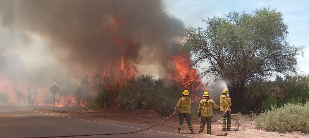 En un esfuerzo conjunto, Bomberos Voluntarios, Defensa Civil, Policía y la municipalidad de Tinogasta, en la zona La Puntilla se movilizan para contener una serie de incendios forestales que asolan la Ruta Nacional 60.