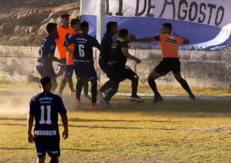 El partido, que se desarrollaba en la cancha de Racing de Fiambalá, en el Departamento Tinogasta, fue suspendido a los 14 minutos del segundo tiempo, luego de que el árbitro Maximiliano Silcan Jeréz expulsara a un jugador del conjunto tinogasteño. En ese momento, el futbolista reaccionó de manera violenta y agredió al juez con golpes de puño, lo que obligó a interrumpir el juego.