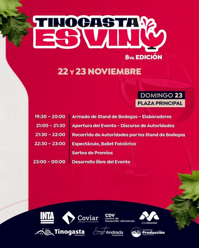 En el marco del Día Nacional del Vino Argentino, el Municipio de Tinogasta se prepara para una nueva edición de su tradicional feria vitivinícola “Tinogasta es Vino”, que se realizará los días 22 y 23 de noviembre.